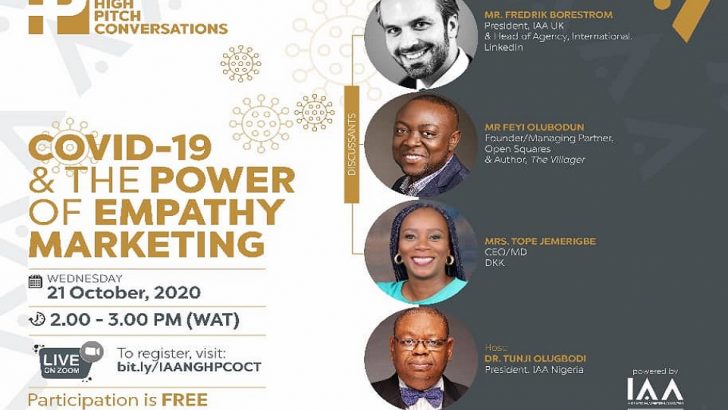 To review the impact of the global crisis caused by the COVID-19 pandemic on businesses in the Marketing Communications Industry and its implication on brands, the International Advertising Association (IAA) Nigeria Chapter is set to hold the maiden edition of its High Pitch Conversation event with the topic, “COVID-19 and the Power of Empathy Marketing”.…